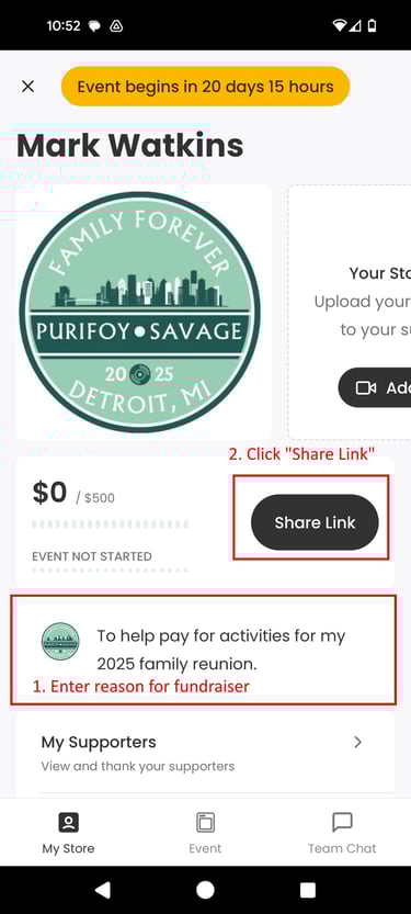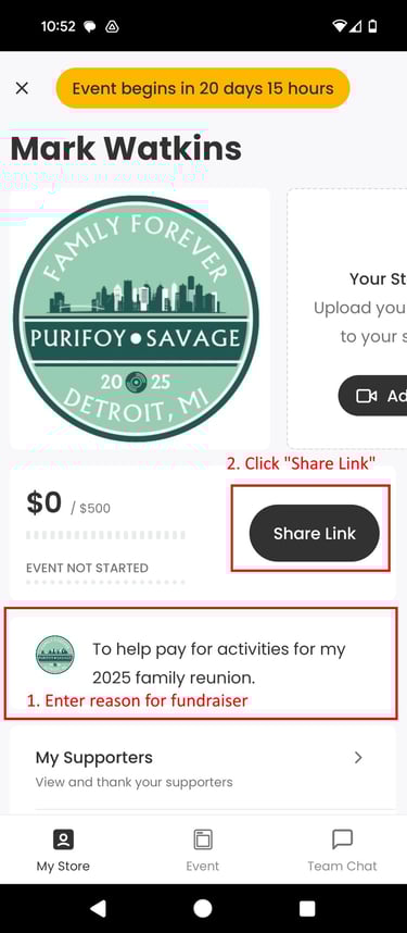 5. Reach out to all of your immediate family members and family members in your area with your link in the next few weeks.